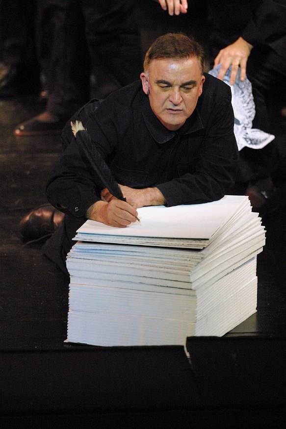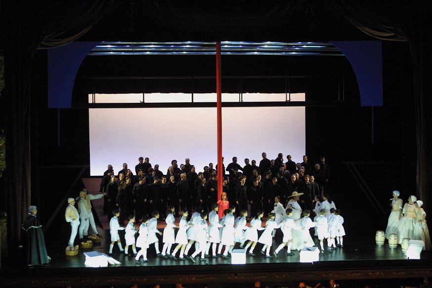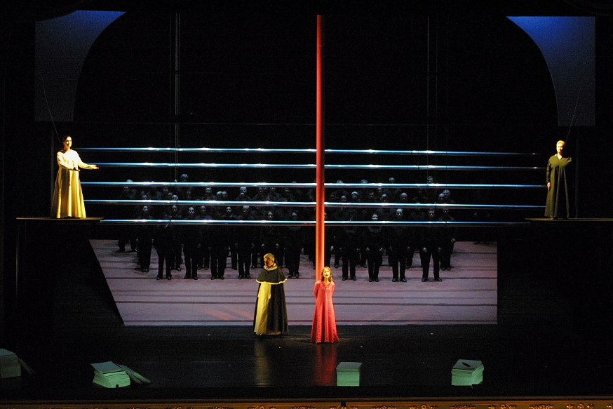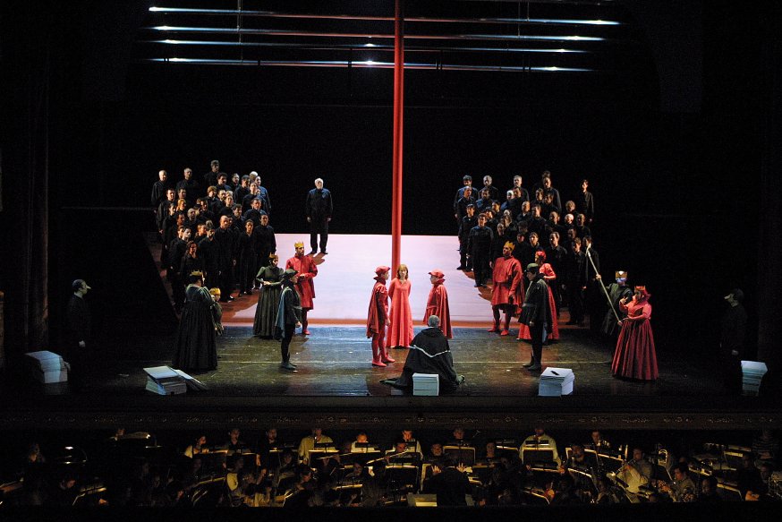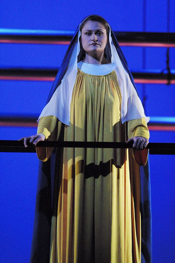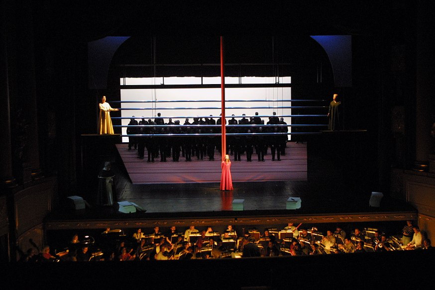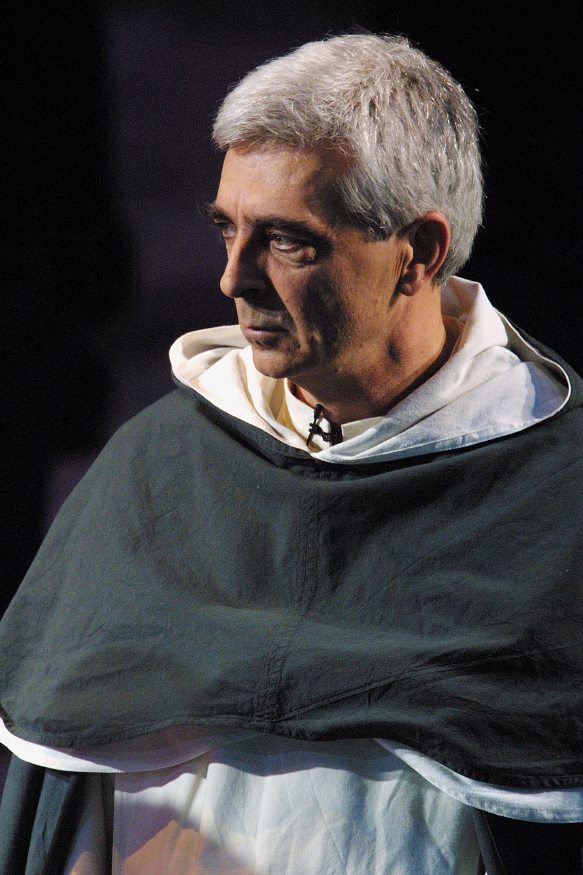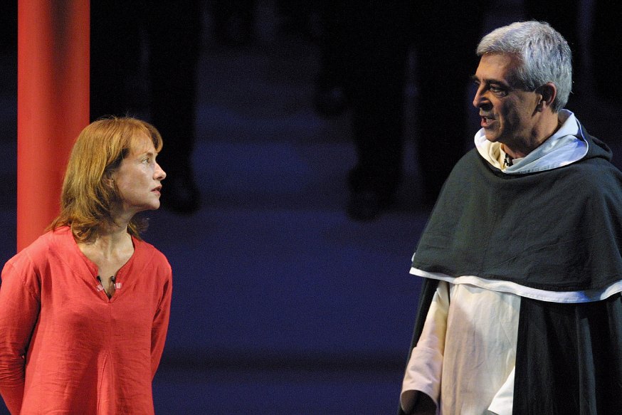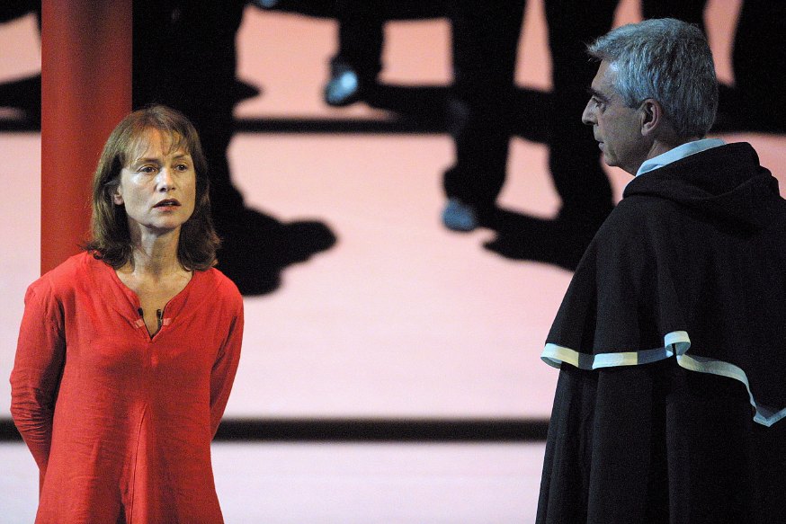 Mas, em meu entender, não é também. Que dizem os sinos? "La cloche noire et la cloche blanche?" Os contrários: «Hérétique, sorcière, cruelle, relapse». Mas também «Jésus Marie» e «Spera, Spira». «Le diable que tu détestais il t'a aidée, les Anges que tu invoquais ils n'ont rien fait.» Para Claudel. como afinal para a nossa fé, é da generosidade, da entrega sem limites ao mais profundamente humano e baixo, da entrega ao sacrífico. ao sagrado fogo que nos queima o corpo, que a alma chega a Deus. É no mal que se chega ao bem. Como neste espectáculo. Da sua ostentatória obscenidade se faz ainda, efectivamente, um moderno auto sacramental. É dessa impureza, dessa espantosa teatralidade, que num palco poderá surgir de facto alguma celebração.
